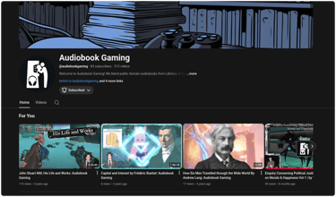 This experimental channel blends public domain audiobooks from LibriVox, in-house, and volunteer recordings (released under the Unlicense) with dynamic gameplay footage provided by the community.