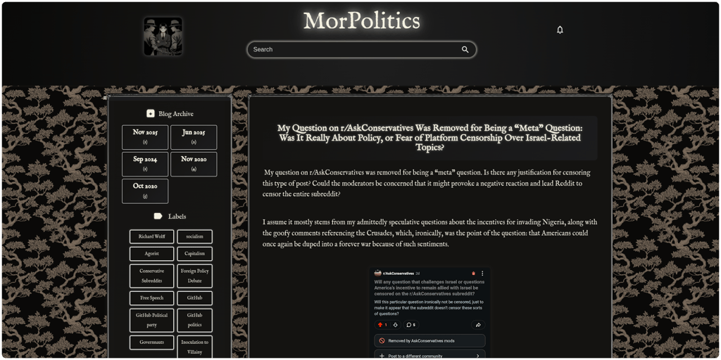 MorPolitics is where political memory meets modern discourse, a home for essays, reflections, and analyses on censorship, ideology, and the shape of public debate in the digital age.